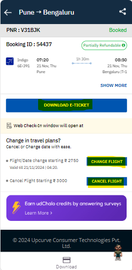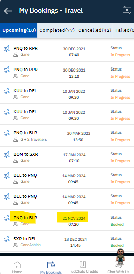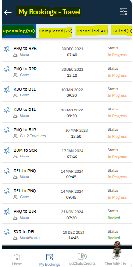 Step 2: In the next page you will get all your bookings. You can check as per your preference. Bookings will reflect as Upcoming, Completed, Cancelled and Failed.