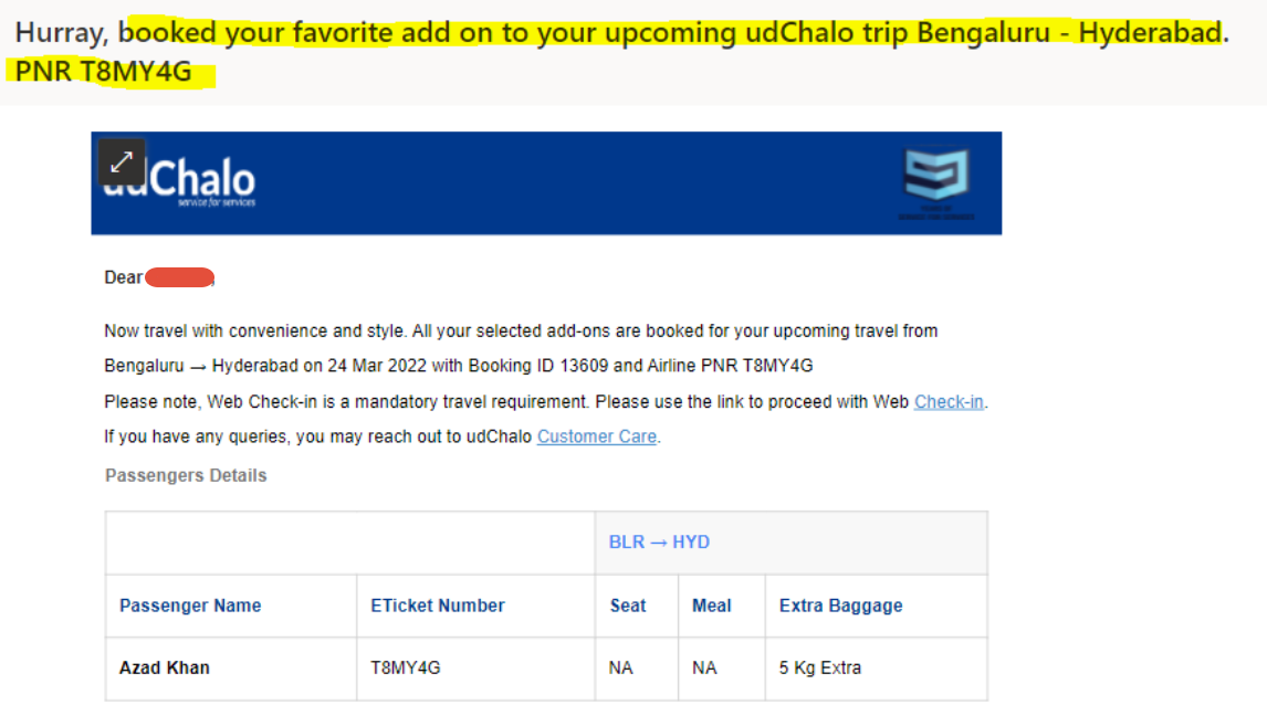 Step 8 : Once the payment is made then the extra baggage will get added into your booking.
