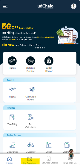 Step 2: Once you have logged in to your profile click on "My Bookings" option.